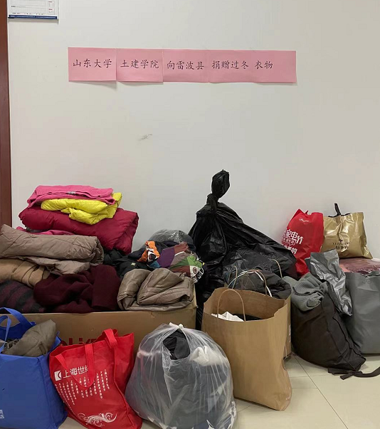 为了响应并落实国家“精准扶贫”政策,为贫困山区群众奉献山大爱心,落实党建工作具体化,2020年12月1日至15日,beat365正版唯一官方网站党委、院工会以及实验中心党支部、工程力学党支部为四川省雷波县贫困群众进行了过冬衣物募捐活动。