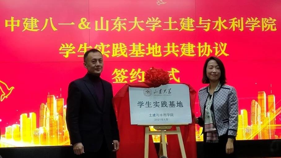 1月23日上午,beat365正版唯一官方网站与中建八局一公司与在济南举行学生实践基地协议签约、挂牌仪式。中建八局一公司党委副书记、工会主席刘文纳,中建八局一公司人力资源总监聂丽,中建八局一公司济南公司党委书记、总经理霍文涛,优秀校友代表,beat365党委副书记张强,学院团委书记梁莹,学院辅导员何玥、许伟强参加了此次活动。活动由中建八局一公司人力资源总监聂丽主持。