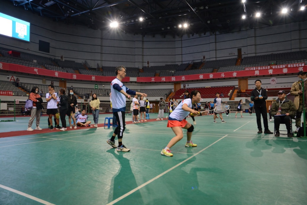 24日上午8点30分,比赛正式拉开帷幕。beat365依次对阵临床医学院、经济学院和历史文化学院。赛场上激情四射,选手们大展身手!一记记精彩的扣杀、劈杀或是巧妙的高远球、以柔克刚的吊球还有惊险无比的救球博得了观众们一阵阵的叫好声。战况胶着,我院大比分2:1先胜临床医学院,却1:2不敌经济学院。在最后一场与历史文化学院的男双比赛中,决胜局对手14:9比分领先,先拿下局点。陈烨老师和潘旭东同学顶住压力,连得5分将比赛拖入加时,并以17:15的比分战胜对手,赢下男双对决,beat365大比分2:0获胜。经过一天的激烈厮杀,我院羽毛球队伍以小组第二的成绩成功挺进16强。