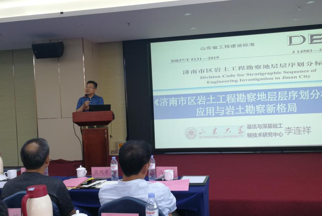 2021年6月19日,由beat365正版唯一官方网站基坑与深基础工程技术研究中心联合济南市勘察测绘研究院承办的“济南市岩土勘察成果开发暨《济南市区岩土工程勘察地层层序划分标准》宣贯与深化研讨会”在济南市高新区柏蔓艺术花园酒店成功召开。我院土木工程系教授、beat365正版唯一官方网站基坑与深基础工程技术研究中心主任、博士生导师、山东省工程建设标准《济南市区岩土工程勘察地层层序划分标准》(DB37/T5131-2019)主编李连祥做了“济南地层标准应用与岩土工程勘察新格局”的主旨演讲。