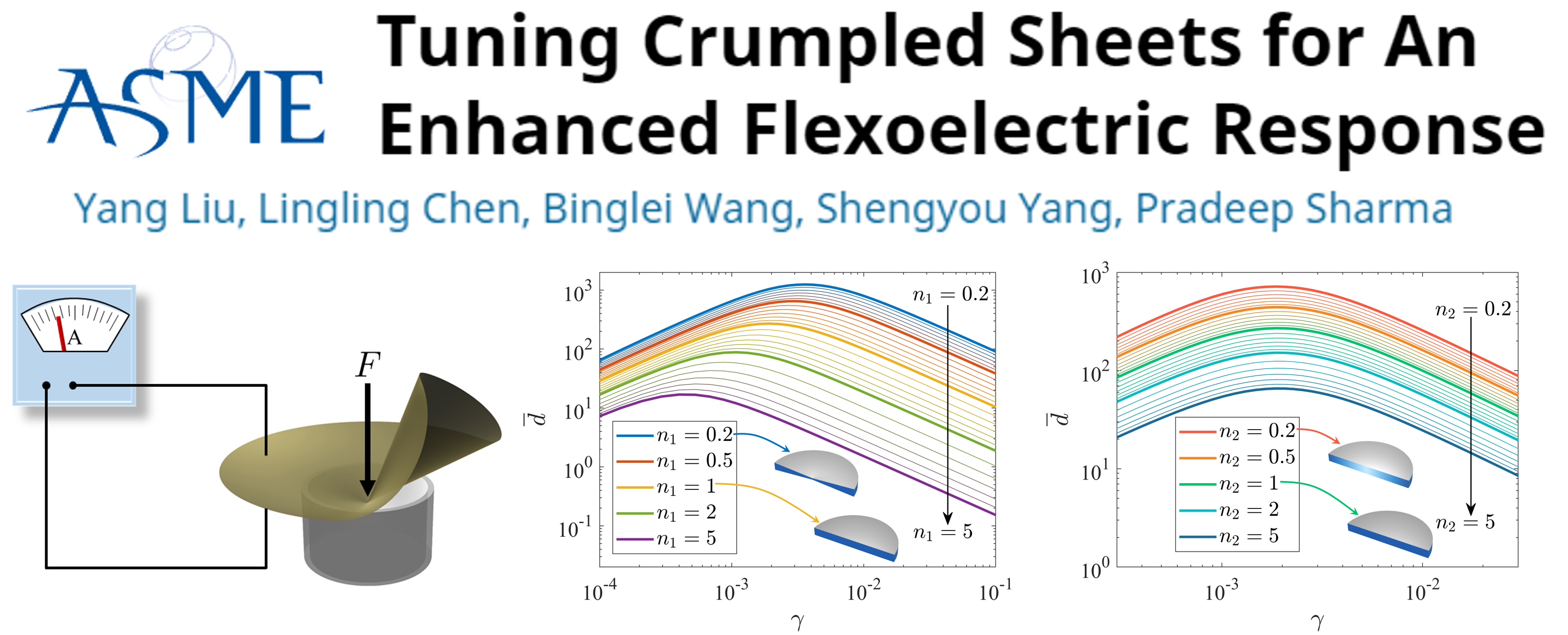 近期,beat365正版唯一官方网站工程力学系王炳雷和阳生有就揉皱结构挠曲电理论在固体力学领域权威期刊Journal of Applied Mechanics-Transactions of the ASME发表题为“Tuning Crumpled Sheets for An Enhanced Flexoelectric Response”的研究工作。王炳雷副教授与美国工程院院士、休斯顿大学机械工程系主任Pradeep Sharma教授为共同通讯作者,beat365正版唯一官方网站研究生刘洋为第一作者,beat365正版唯一官方网站为第一完成单位。