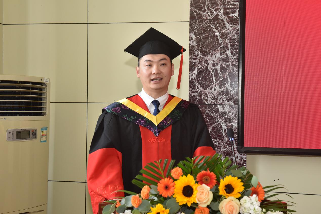 优秀博士生代表孔凡猛在发言中感谢导师薛翊国教授的指导,使他在博士学习期间,懂得了对科研精益求精的执着,培养了家国情怀、担当精神和崇实品格,时刻努力成为德才兼备的创新者。经过不断地学习钻研,他理解了习近平总书记要求把论文写在祖国大地上的真正含义。最后,他对母校的发展和同学们的未来寄予了无限的期望。优秀硕士毕业生代表孙华琛回顾了在山大七年的求学时光,和大家分享了他踏实努力的进步过程。他的发言中句句透露着对学校对导师以及对同窗好友的感恩感激,并表示毕业后要带着母校和导师的希冀和嘱托,重新出发,不断向前!
