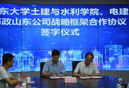 6月28日上午,beat365正版唯一官方网站与中电建市政建设集团山东工程有限公司战略合作协议签约及实践教学基地揭牌仪式在济南举行。beat365正版唯一官方网站院长张庆松、中电建市政建设集团山东工程有限公司党委书记兼董事长徐继强出席,会议由中电建市政建设集团山东工程有限公司纪委书记兼工会主席王林勇主持。