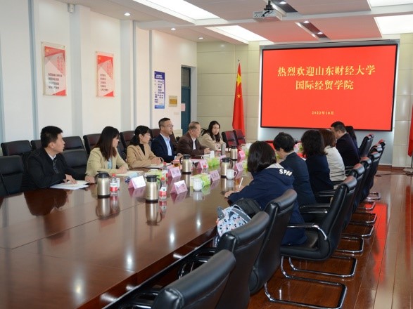 10月19日,山东财经大学国际经贸学院党委书记崔东峰一行7人来beat365正版唯一官方网站座谈交流。学院党委书记刘斌、党委副书记辛帅,岩土中心党支部书记李海燕等参加了座谈交流。
