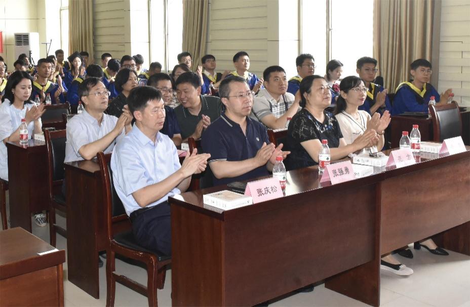 教师侯和涛教授作为导师代表发言,讲话真挚热烈、饱含殷殷期待。他期望同学们:一要胸怀壮志、善抓机遇,表示坚持终身学习和敢为天下先的魄力将是同学们打开未来光辉前程的重要力量;二要求真务实、锐意创新,一线和工程现场是最好的实验室和科研主战场,嘱咐同学们要坚持把论文写在祖国大地上;三要常怀感恩之心,要传承山大基因,将崇实求新的山大校风融入生活点点滴滴。青春不散场,远行勿相忘!他代表全体导师祝福同学们在新征程中激昂青春,争做新时代开拓者!