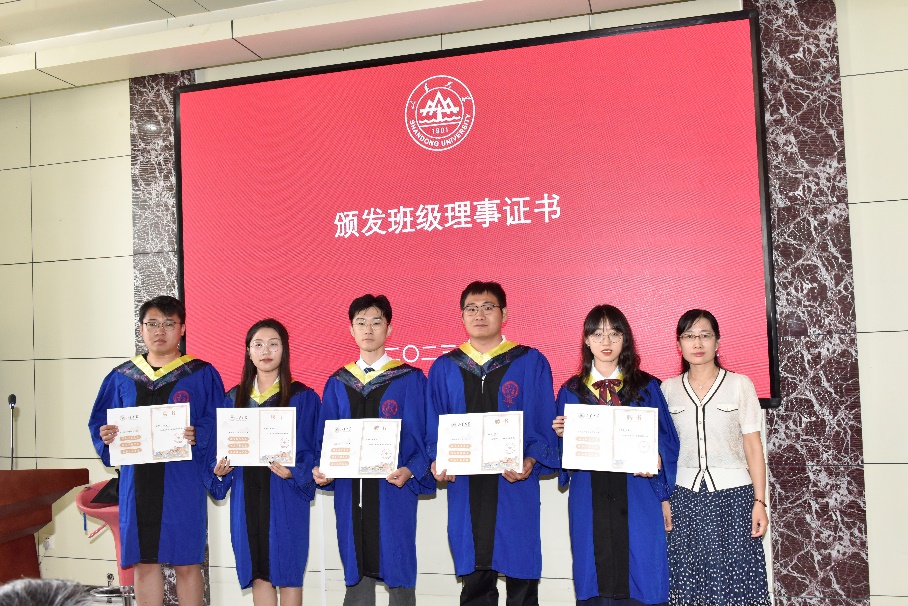 学生发言阶段,孙乐乐和吕泊宁分别作为优秀博士生和优秀硕士生作典型发言。孙乐乐在发言中表示,一要感恩时代与国家,为成长发展提供了无限天地;二要感恩学校学院,为成长发展筑牢了人生根基;三要感恩导师亲友等,为成长发展锤炼了过硬本领,他号召同学们砥砺爱国之心,力践民族复兴之行!吕泊宁在发言中回顾了山大三年流金岁月,分享了自己在导师和同门帮助下从青涩走向成熟的过程,她号召胸怀家国天下之情怀,将毕业离歌化作人生新的奋斗序章!