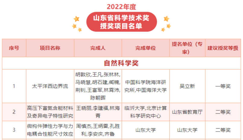 beat365正版唯一官方网站工程力学系王炳雷副教授作为第二完成人的成果“微构件弹性力学与力电耦合性能尺寸效应”荣获2022年度山东省自然科学奖二等奖。