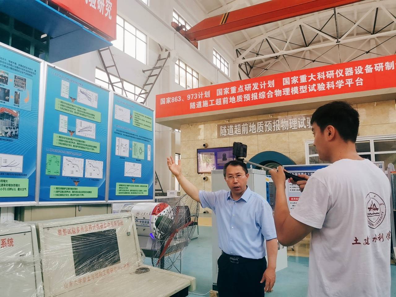 为加深同学们对学院科研创新的了解,学院安排了实验室云参观活动。张强勇和李尧老师以直播形式带领同学们学习参观了大型地下洞室群教育部工程研究中心、隧道与地下工程灾害防控实验室等,介绍了国家973项目《隧道施工超前地质预报综合物理模型试验科学平台》、国家973项目课题《油气储库群运营中的灾变风险评估与调控机制》、国防科工局重大项目课题《高放废物深埋地质处置地下实验室大型地质力学模型验证试验》等模型试验研究成果,讲解了隧道超前地质预报物理模型试验系统等相关课题项目的最新研究进展,云参观过程中,两位老师语言形象生动,讲解深入浅出,给参营的同学们一种身临其境的学习感受。