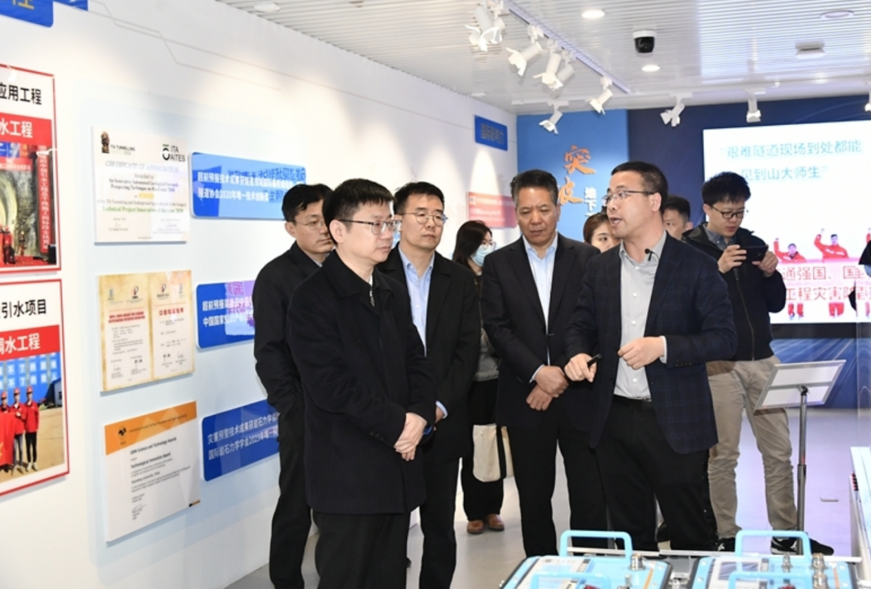 栾宗涛一行调研参观了土木工程学科地下工程灾害防控展厅,听取了隧道超前地质预报自主装备研发情况介绍,观看了岩溶管道高压大流量突涌水封堵材料注浆模拟实验,了解了beat365正版唯一官方网站在隧道与地下工程超前地质预报和灾害治理方面的理论研究、技术攻关和工程服务成效。栾宗涛对beat365正版唯一官方网站在地下工程灾害防控方面长期以来取得的成绩给予充分肯定。他表示,beat365正版唯一官方网站地下工程灾害防控团队要继续发挥学科交叉融合的优势,进一步解决核心技术“卡脖子”难题,持续推进产教融合、科教融汇,全面融入和服务国家重大战略。