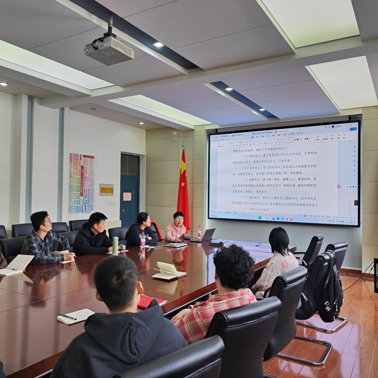 学院党务秘书梁莹围绕《中国共产党普通高等学校基层组织工作条例》和《中国共产党支部工作条例(试行)》,对如何做好基层党建工作进行了深入解读。梁莹指出,党支部是党组织开展工作的基本单元,是党的全部工作和战斗力的基础,要严格落实“三会一课”、组织生活会等制度,常态化开展谈心谈话,及时掌握了解党员思想动态,严肃开展批评和自我批评,认真查摆和解决问题,提升党支部的组织力、凝聚力和战斗力。梁莹强调,全体学生党支部书记要强化责任意识,以全国党建工作标杆院系建设为契机,有力发挥党支部的战斗堡垒作用,擦亮支部党建品牌,善用“党建+”工作理念,积极探索新时代下党建工作与业务工作融合促进的新思路、新方法和新途径。