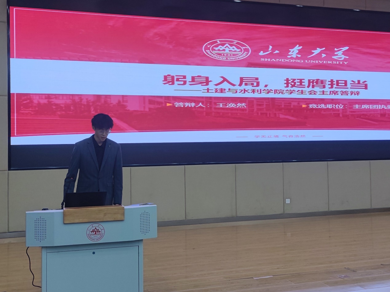 13名学生组织主席团候选人先后从工作经历、个人优势、工作规划、未来展望四个方面进行了竞职演讲,并回答评委提问。学生代表认真听取候选人的演讲,进行了无记名投票,选举新一届学生组织主席团成员。