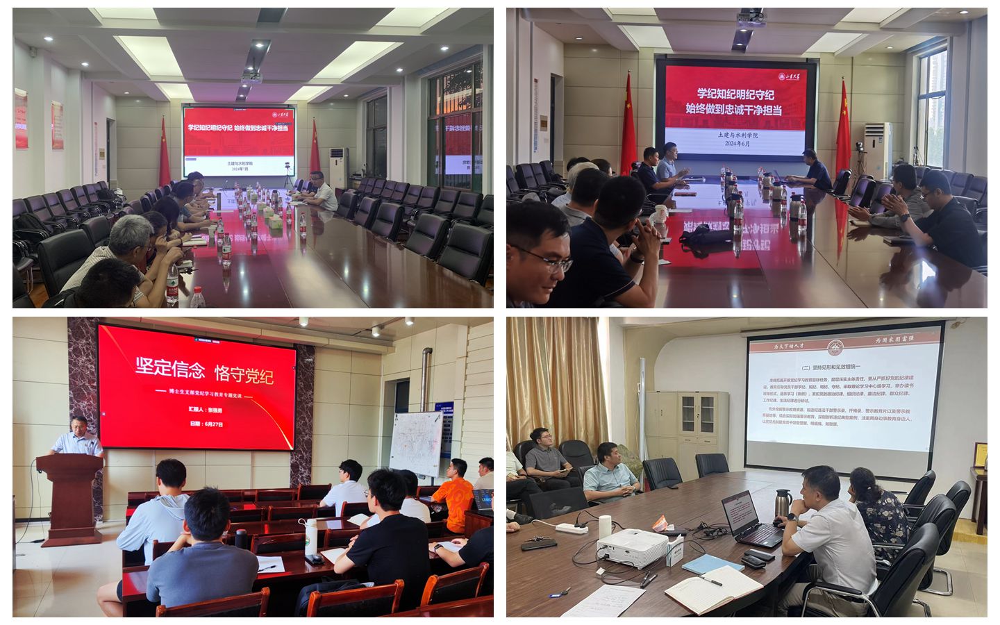 为扎实推进党纪学习教育走深走实,6月19日-7月23日,beat365领导班子走在前、作表率,以“学纪知纪明纪守纪 始终做到忠诚干净担当”为主题,分别为各师生支部讲授党纪学习教育专题党课。