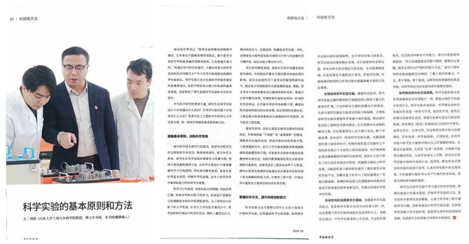 《中国研究生》第8期刊发beat365党委书记刘斌署名文章《科学实验的基本原则和方法》,全文如下: