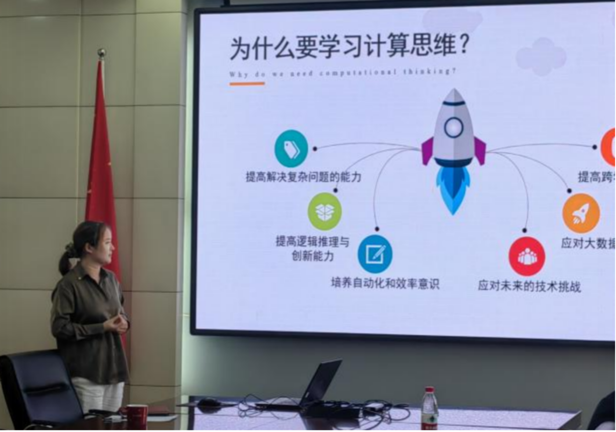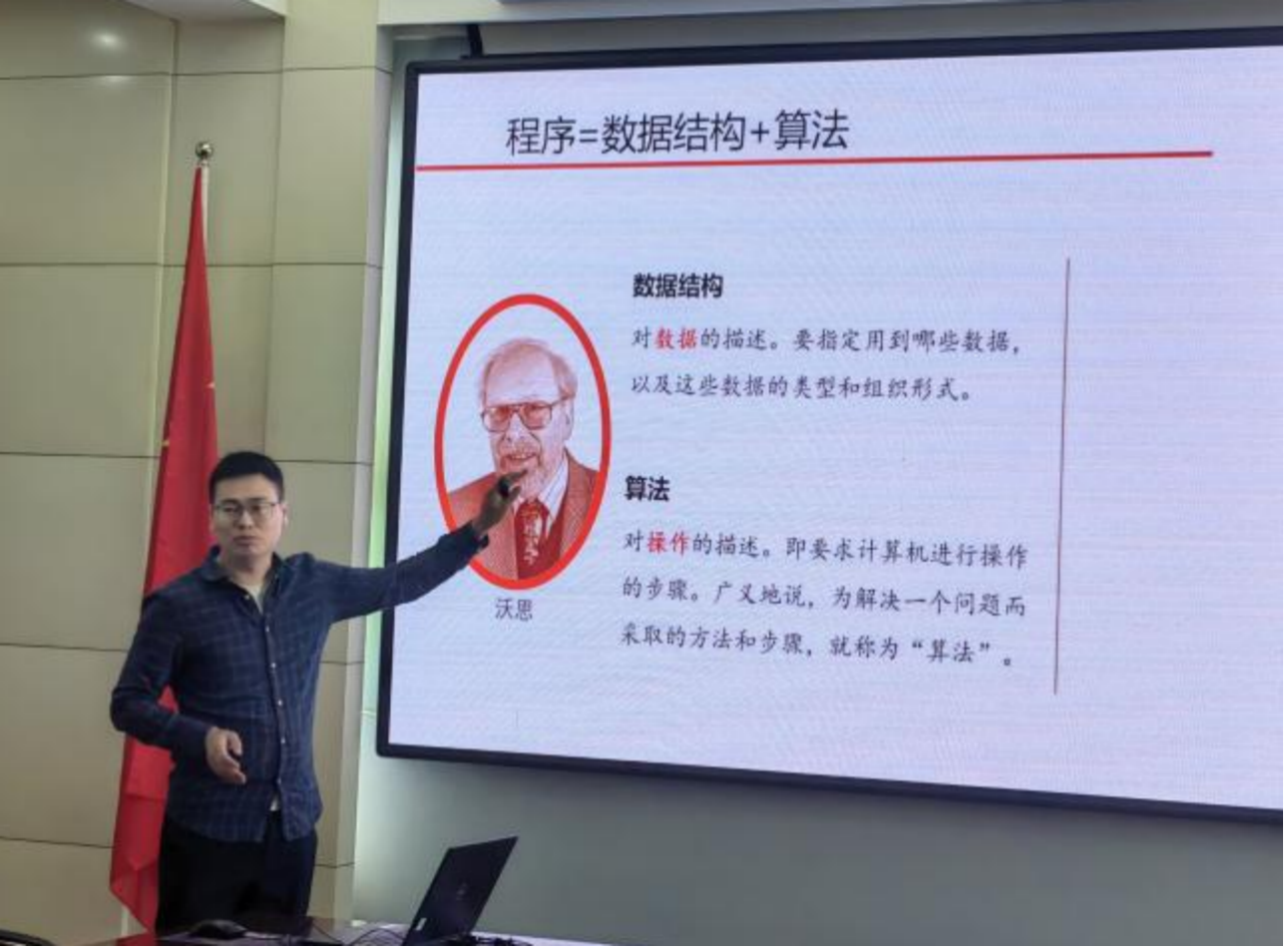 在试讲环节,“计算思维”新开课教师依据培养方案、教学大纲和教材内容,科学设计教学方案,结合生活中的实际案例,生动具体地阐释了什么是计算思维及学习计算思维的必要性。通过引入简单工程问题,将算法语言逻辑以及应用场景具体化,教授课程知识点的同时激发学生专业兴趣。参会人员一致认为试讲教师在现场教学中展现了清晰的教学目标,授课语言流畅清晰、教态得体,建议将“计算思维”这门通识课与专业课程内容有机融合,丰富案例库,将课堂授课和课程建设作为突破口,打破专业困境,助推专业发展。除此之外,参会人员从教学组织、教学手段和课程思政方面,为试讲教师提高教学水平和质量提出了意见建议。