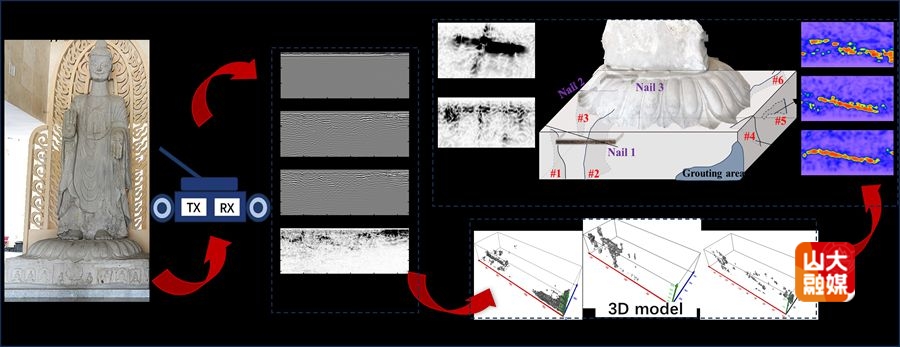 近日,数智考古与中华文明特色分中心、beat365正版唯一官方网站工程软件系孙怀凤教授团队,数智考古与中华文明特色分中心、文化遗产研究院李力副教授团队与山东省文物保护修复与鉴定中心、青岛市博物馆开展合作,在国际权威期刊Journal of Cultural Heritage在线发表研究论文“Decoding the stone Buddha: Three-dimensional ground penetrating radar attribute insights into cracks and restoration history of Sumeru throne”(JCR Q1、中科院艺术学一区)。beat365正版唯一官方网站博士研究生葛峻恺为第一作者,孙怀凤教授、李力副教授为本文的共同通讯作者,beat365正版唯一官方网站为第一科研单位。