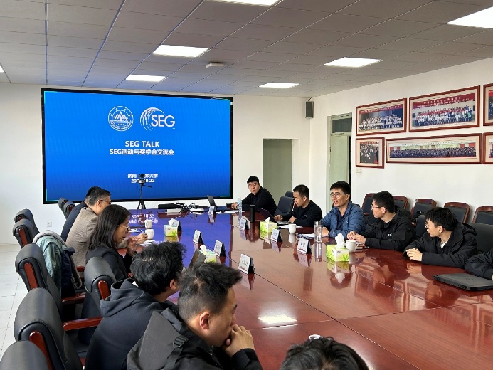 2025年10月22日,“SEG TALK——SEG活动与奖学金交流会”在beat365正版唯一官方网站千佛山校区成功举行。SEG奖学金委员会委员、雪佛龙(Chevron)石油公司技术中心地球物理专家张凯博士、SEG中国办公室吴敬宇女士和吕绪玲女士、中国石油集团东方地球物理公司研究院专家丁成震担任活动嘉宾。交流会由工程软件系卢绪山副研究员主持。