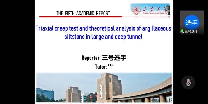 参赛选手汇报的课题方向广泛。有的选手利用机器学习、神经网络等方法做反演方法或理论分析,有的选手结合实际工程做岩石力学和地球物理探测相关方向,有的选手做了全英文的PPT展示,有的选手进行了全英文汇报,让人耳目一新。选手们的汇报情况充分展现了岩土工程中心深厚的学科实力和中心特色。选手们的课题大部分都结合各个课题组参与的实际工程。在工程实践中发现问题、思考问题到解决问题,最后又回到工程中去。研究成果服务于生产实践,真真正正的把科研论文写在了祖国大地上。