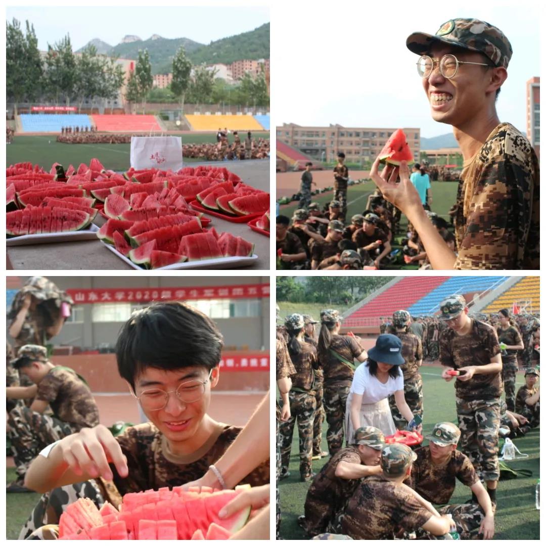 为保证同学们的身体健康,beat365贴心为军训成员准备花露水、风油精、藿香正气水等防暑物资,并分发绿豆汤、西瓜进行解暑。当学生们拿到西瓜,炎热的风雨操场上瞬间清凉起来,他们的笑声传遍兴隆山。在休息时间内,同学们拉练军歌,声音洪亮,气势豪迈,展现出的满腔热血与昂扬斗志。