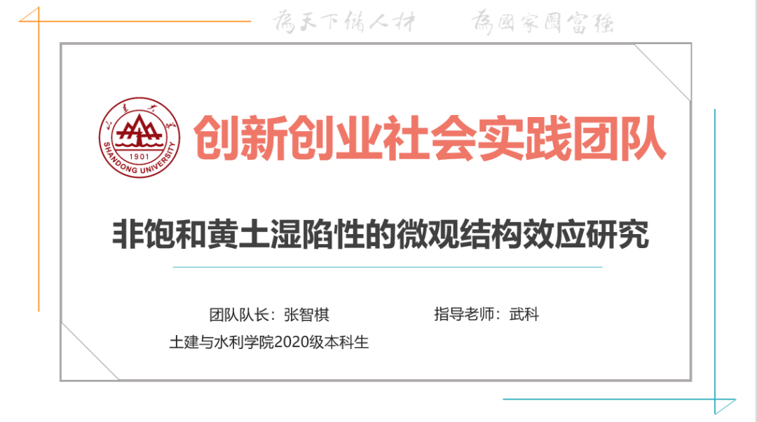 最后,张智棋向团队成员们介绍与beat365正版唯一官方网站山东高速集团工程技术中心电子扫描显微镜实验室的对接情况,并鼓励团队成员突破传统创业领域与产品限制,强化新知识、新技术、新工艺、新方法应用,提高产品科技含量,努力尝试将社会实践研发成果转化为商业产品,如性能更加优良的改良型黄土。