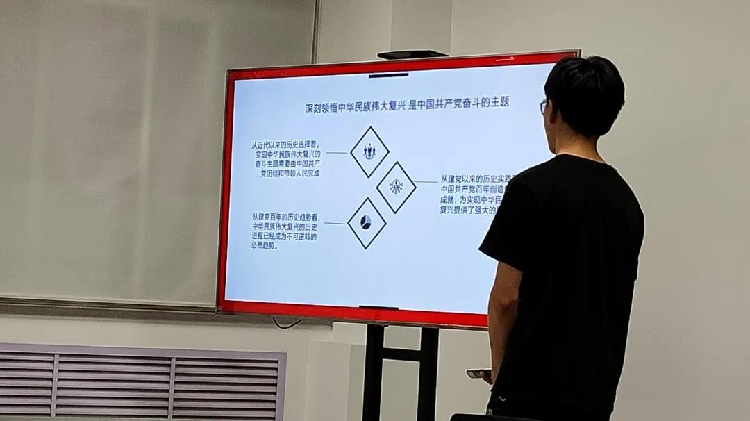 孙帅明讲述了“深刻领悟中华民族伟大复兴,是中国共产党奋斗的主题”重要观点。从近代以来的历史选择,建党以来的历史实践,建党百年的历史趋势三个层次解读“中华民族伟大复兴”这一奋斗主题。随后,他阐释了“深刻领悟九个‘必须’ 是全面建成社会主义现代化强国的行动指南”,并逐一解读了九个“必须”,强调我们应该以历史观的角度认真思考中国共产党的奋斗历程以及奋斗目标。