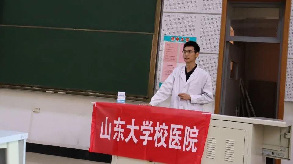 随后,臧威向同学们介绍了几种校园常见的传染病及相对应的防控措施。他从呼吸道传染病、肠道传染病和血液、性接触传染病三个方面出发,结合实际案例,与同学们分享了意外伤害与卫生应急的相关知识。如面对突发的皮肤烫伤情况时,应遵循“冲-脱-泡-盖-送”五步骤;面对宠物咬伤应及时用肥皂水冲洗并接种狂犬疫苗;鼻出血和扭伤骨折等突发状况,应及时冰敷缓解……他为同学们扫除了一些急救知识盲区,同学们获益匪浅。