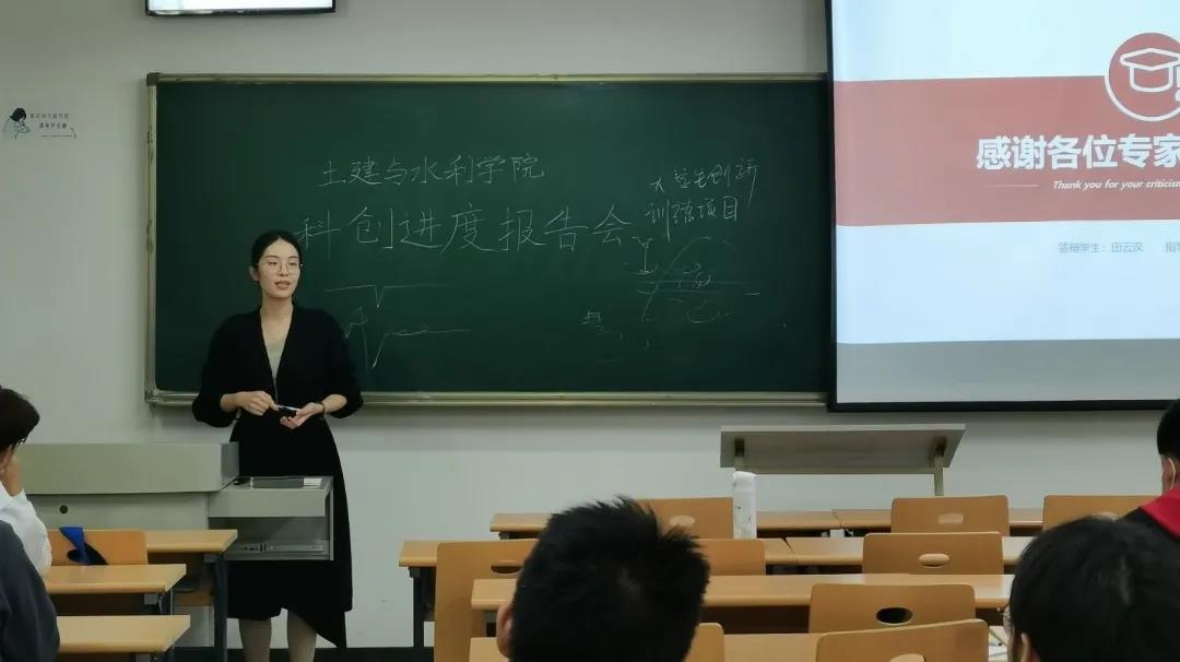 科创团队研究的主题丰富多样,但都对科研充满热情,有着严谨认真的科研态度。张智棋团队介绍了科研项目的流程,明确了接下来的研究方向,并对何玥提出的有关研究黄土湿陷性的研究目的和预期成果进行进一步阐述;阎相君作为陈博文团队的代表,生动地展示了现浇式楼板施工方式,并介绍了项目进展情况和科创团队科研的具体经历;魏方晨在交流中寄语新生,“我们多数人以往从未想过钢管的结构是怎么样的,但正是科研,要求我们去探索观察我们从未了解的事情,刷新对世界的认识。”不论是方雅欣讲述的硬核的学习经历,还是田云汉幽默诙谐的故事分享,都完美地展现了山大学子知行合一、实事求是的科研态度。在提问交流环节,何玥进一步了解项目内容,帮助报告人明确研究方向并提出建议。