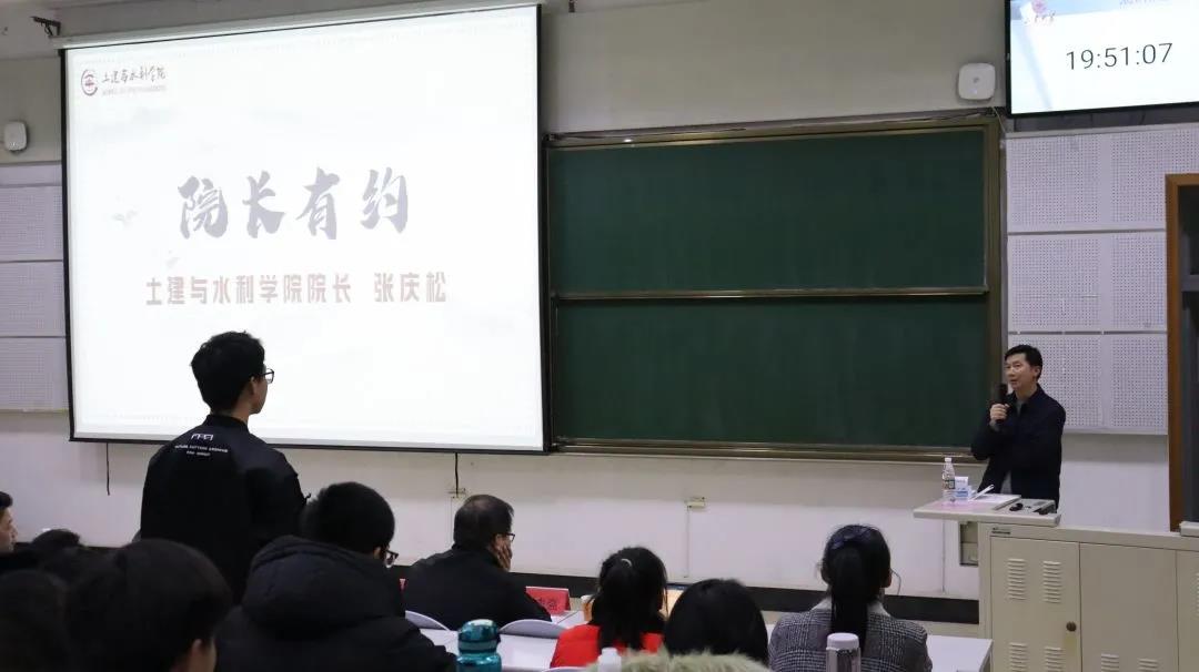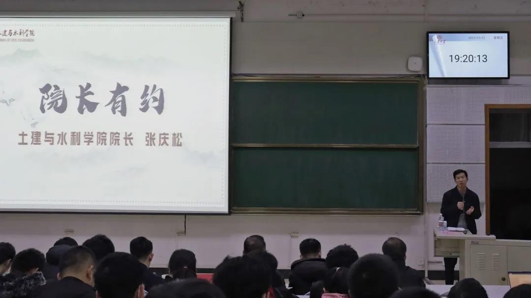 11月12日晚7时,beat365正版唯一官方网站举办2021年秋季学期第一期“院长有约”活动。本次活动由长江学者特聘教授、beat365院长张庆松担任主讲人,副院长韩勃,党委副书记张强,2021级土木水利与海洋工程2班班主任刘其方、3班班主任王俊以及各年级辅导员出席,2021级全体同学参加。