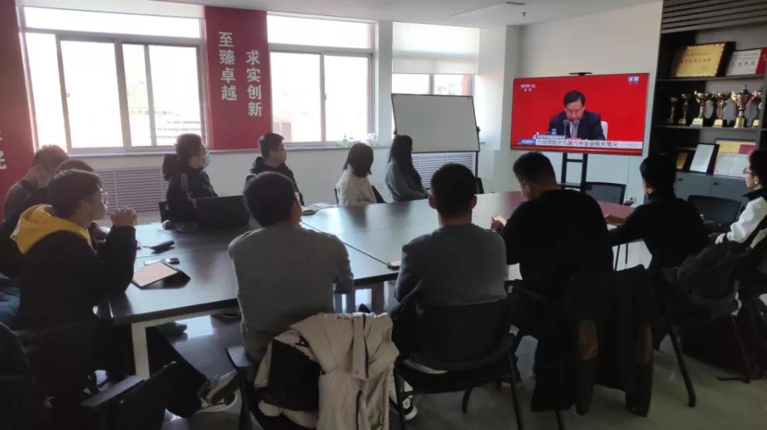 11月12日上午10时,中共中央召开了关于党的十九届六中全会精神新闻发布会,beat365本科生第一党支部全体成员于beat365正版唯一官方网站兴隆山校区实验楼633会议室第一时间组织集体收听、观看大会直播实况,引起热烈反响,引发支部成员主动学习和讨论。