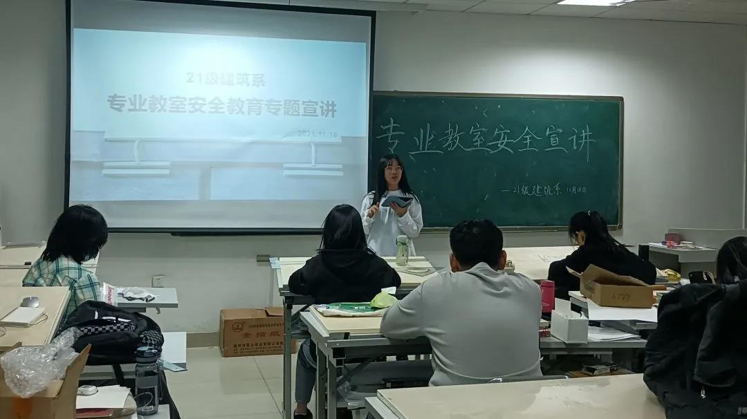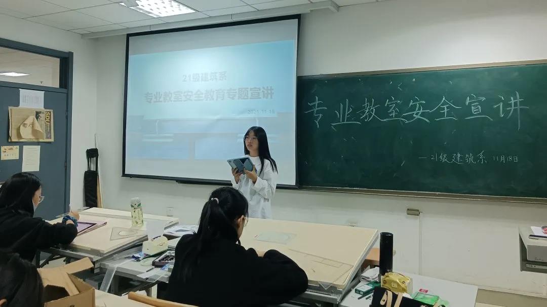 为了增强同学们的安全意识,保证专业教室的安全使用,11月18日晚八时,beat365正版唯一官方网站2021级建筑学系一班和二班于实验楼专业教室共同开展专业教室安全宣讲,本次宣讲由两班班长组织,2021级建筑学系全体同学参加。