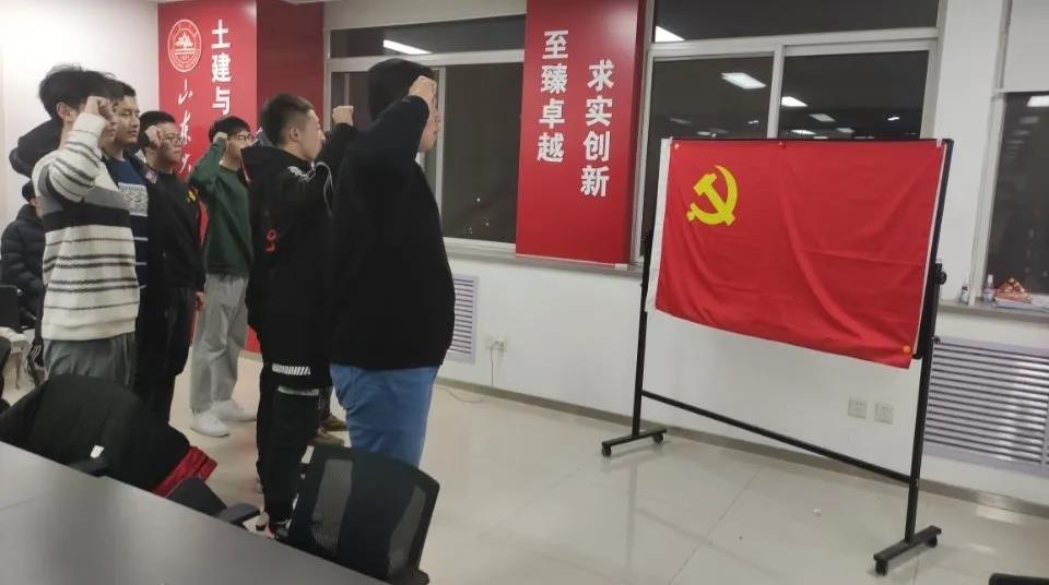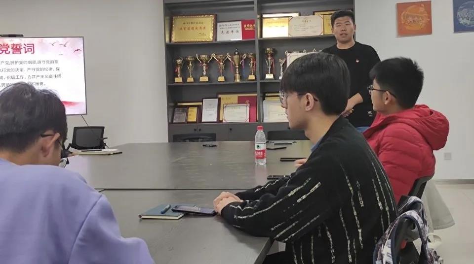 最后,预备党员进行宣誓。张瑞康同志带领各位预备党员进行宣誓,中共预备党员梁新翔、金霄、马天昊等积极回应,大家纷纷表示要在党的领导下为共产主义事业贡献力量。