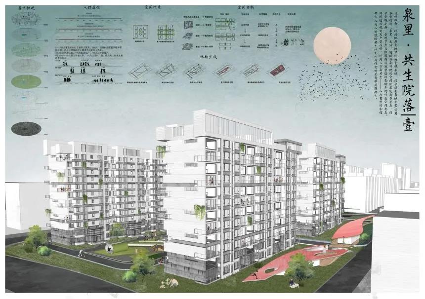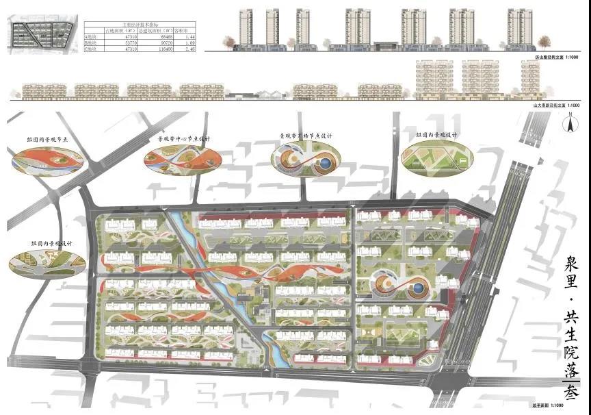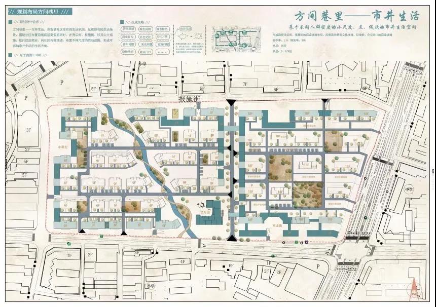 牛雨雨的作品以场地原有的泄洪沟为景观基础,结合济南泉城形象,利用水景打造“泉里”生活,延续济南传统的空间院落及街巷形态,结合景观小品、景观节点及组团内的设施塑造“开放中围合”的济南特色的住区空间形态。