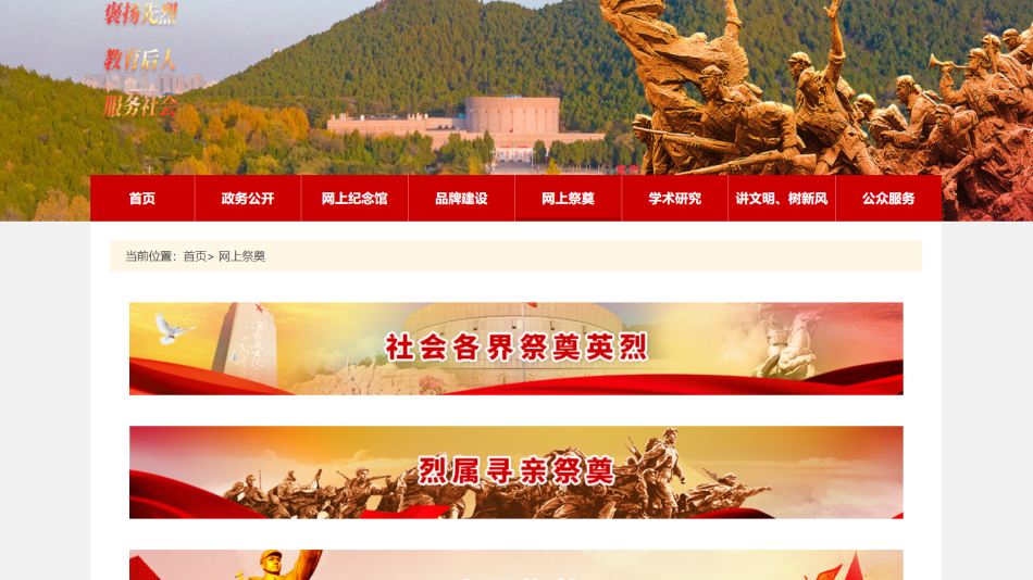 进入济南革命烈士陵园官网(jngmlsly.jinan.cn/col/col3810/index.html),可以选择网上祭奠,或者网上参观。