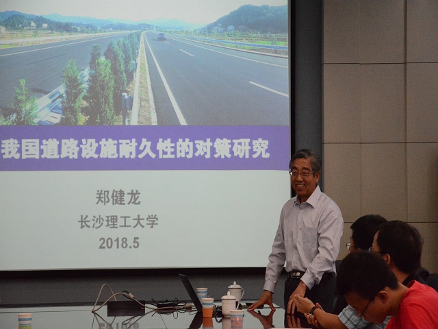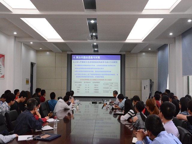 报告开始,郑院士首先就我国公路基础设施的现状作了介绍。他指出我国公路与高速公路建设规模巨大,公路基础设施的设计寿命约为15年,与国外沥青路面的设计寿命(30-50年)相比,使用寿命明显偏短。郑院士认为改进路面的设计理念与方法,开发新一代道路结构体系及高性能道路材料,提高施工管理与施工控制水平,是提高公路基础设施耐久性的根本途径。