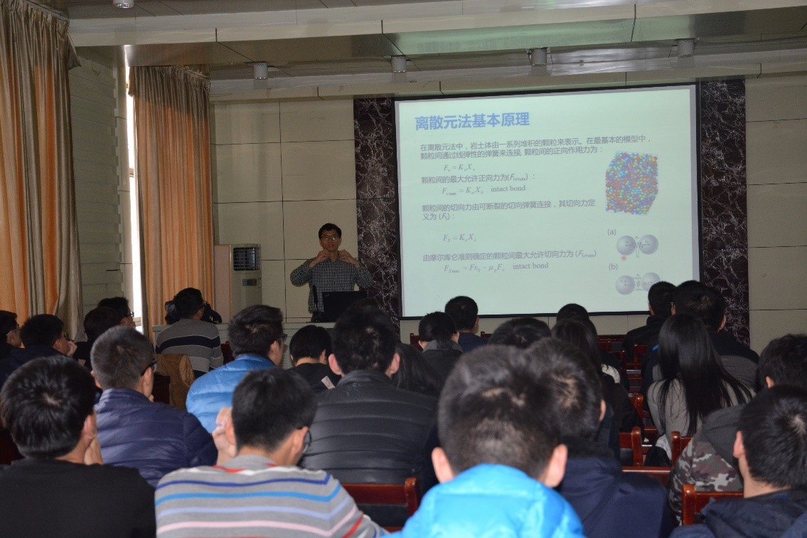 2017年12月22日下午2点30分,由beat365正版唯一官方网站主办的研究生学术前沿讲座在千佛山校区水利楼三楼报告厅举行。刘春副教授作客此次讲座,带来主题为“岩土体大规模离散元理论、系统研发和应用”的学术分享。本次讲座由beat365正版唯一官方网站副院长、博士生导师刘健教授主持。部分研究生及学院老师参加了此次讲座。