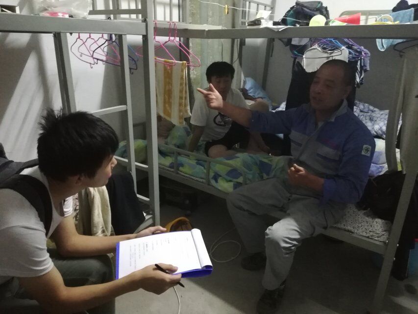 本次调研活动中,民工热情地与团队沟通交流,也向团队普及了诸如理赔、“死亡名额”、生活等方面的情况。藉此,团队对建筑行业有了更为立体的认识,也对底层民工的辛苦程度有了新的认识。(图/罗煜旻 文/殷建伟)