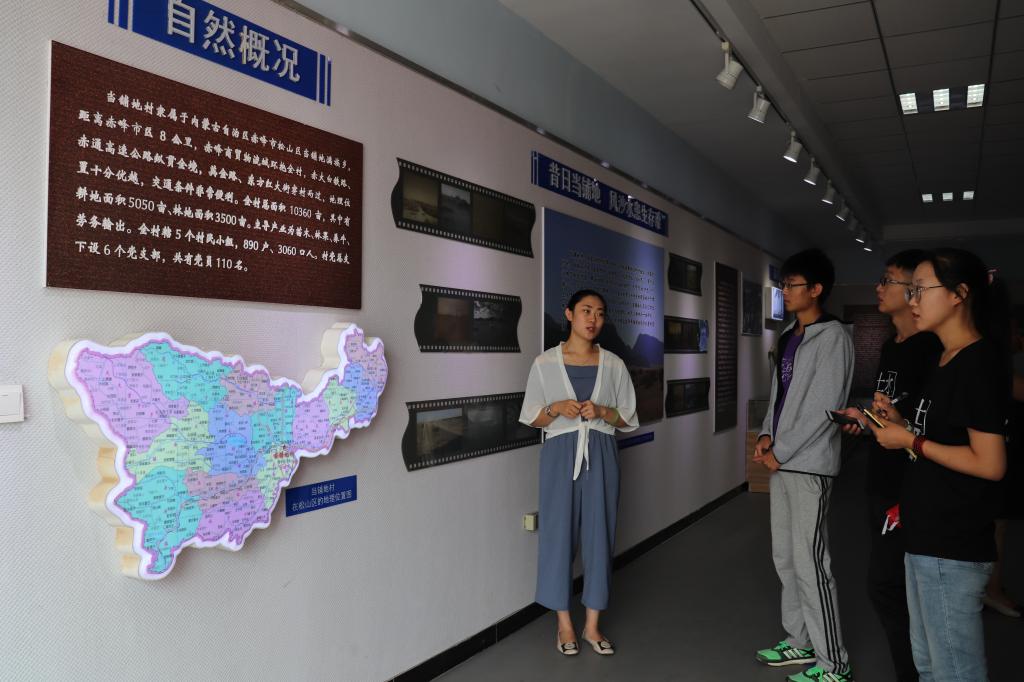 上午9点,团队抵达当铺地村,在解说员范女士的讲解下,成员们参观了当铺地村的东方红精神教育展馆,对村子的历史及发展有了初步的了解。据介绍,松山区当铺地满族乡当铺地村,全村总面积10360亩,耕地面积5050亩,林地面积3500亩,3160口人。支部大队曾经叫东方红大队,因老支书陈洪恩而闻名。在陈洪恩老支书85年的人生岁月里,他带领村民战天地斗风沙,植树造林改善生产生活环境,锻造出艰苦奋斗的“东方红精神”,这种精神就是一部战天斗地艰苦卓绝的奋斗史、改天换地旧貌新颜的创业史。村党总支在谋划发展、开展工作的同时,始终不放松自身建设,不断赋予东方红精神新的时代内涵,深入学习党章,学习习近平总书记系列讲话精神,坚定地跟党走。经过长时间的奋战,当铺地村从一个“万亩沙海三棵柳”的穷沙窝摇身一变成了远近闻名的林成网、田成方的“鱼米之乡”。