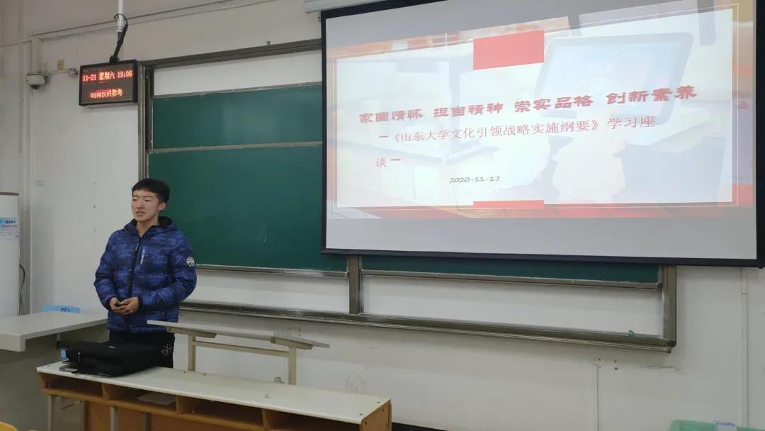 本次团日活动分为土木一班第一学年年度总结,《beat365正版唯一官方网站文化引领战略实施纲要》学习座谈及党的十九届五中全会精神的学习三个部分。首先,马天昊从集体之风,学习之风,文体之风三个风气对去年土木一班的整体情况作了回顾。在集体方面,土木一班开展了多种多样的活动荣获手拉”手志愿服务第一名”,“向祖国告白情景剧第一名”,“新生杯辩论赛第一名”,“院运动会第二名”,“院篮球赛四强”。学习方面,土一总人数24名,在年级前十五名我班8人,占班级总人数35%。文体方面,开展了“班级logo,服装设计大赛”,“走向自然爬山活动”,“夜跑兴隆山体育活动”等多种活动。活动进入第二部分,马天昊继续带领大家学习了《beat365正版唯一官方网站文化引领战略实施纲要》。他将党代会的主题以及党代会以来的成就等并与山大现状相结合,指出应高举习近平新时代中国特色社会主义思想伟大旗帜,全面贯彻党的十九大精神,创新发展理念,激发办学活力,推动内涵发展,追求卓越,只争朝夕,奋力开创中国特色世界一流大学建设新局面,为实现中华民族伟大复兴的中国梦作出山大贡献。第三部分,刘鹏用各种大型会议科普和公报内容学习两个主题带领同学们学习了党的十九届五中全会精神。他讲解了全国人民代表大会、全国人大常务委员会和全国人民政治协商会议三种会议。然后他开始了详细讲解了党的十九届五中全会精神,全会听取和讨论了习近平总书记受中央政治局委托做的工作报告,审议通过了《中共中央关于制定国民经济和社会发展第十四个五年规划和二零三五年远景目标的建议》,习近平总书记就《建议(讨论稿)》向全会做了说明。
