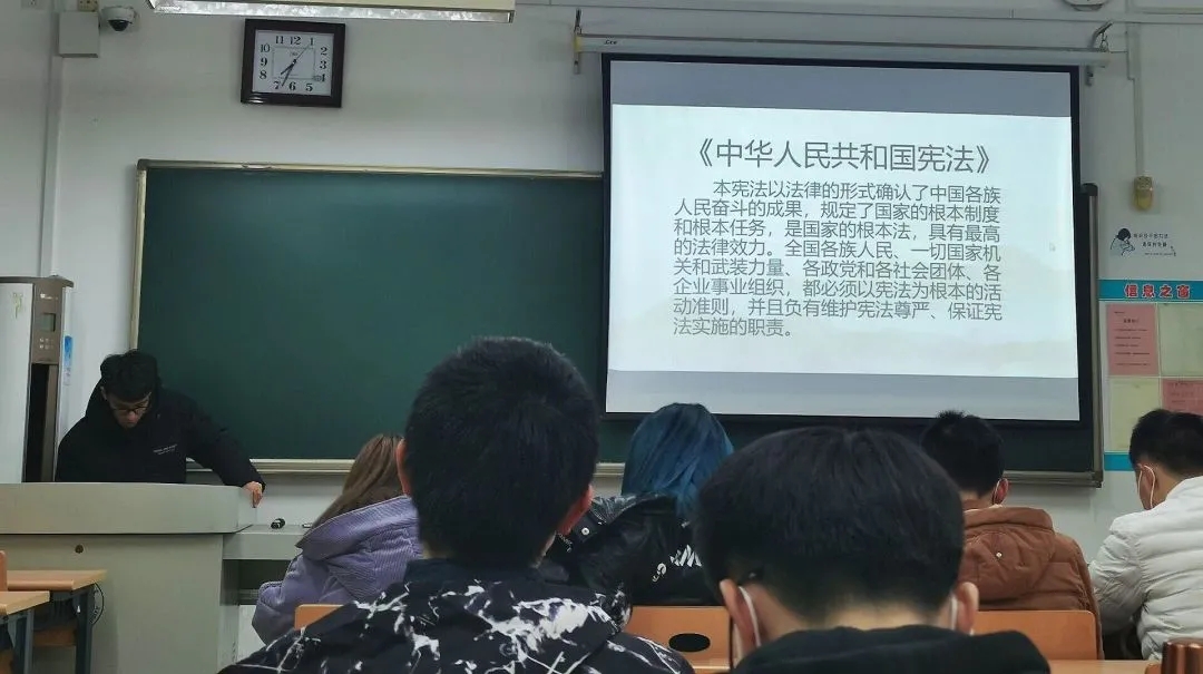 12月12日晚,beat365正版唯一官方网站2020级土水海二班于教学楼1403教室开展“深入学习宪法知识 大力弘扬法治思想”主题团日活动,活动由团组织委员吕佰毅主持,土水海三班全体团员参加。