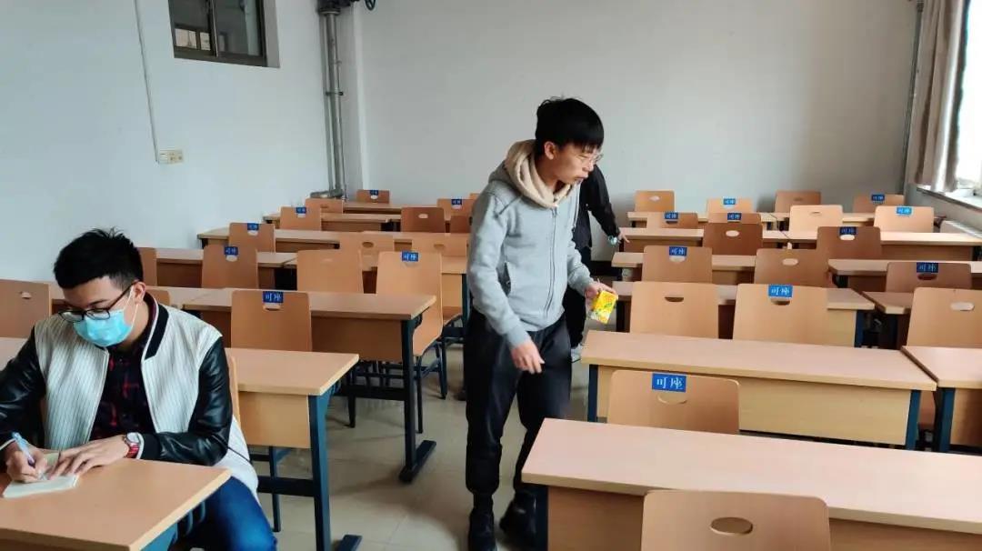 本次志愿服务内容包括检查兴隆山校区教学群楼A座所有教室内课桌椅情况,发现问题及时记录,清理杂物。考虑到教学楼上课及自习情况,为减少对学生的影响,范桂宁将服务时间安排在中午12时至13时。中午12时,2019级建筑二班全体成员于实验楼集合,在范桂宁讲解注意事项后,学生以小组为单位分别对教学楼一至五层桌椅进行检查。