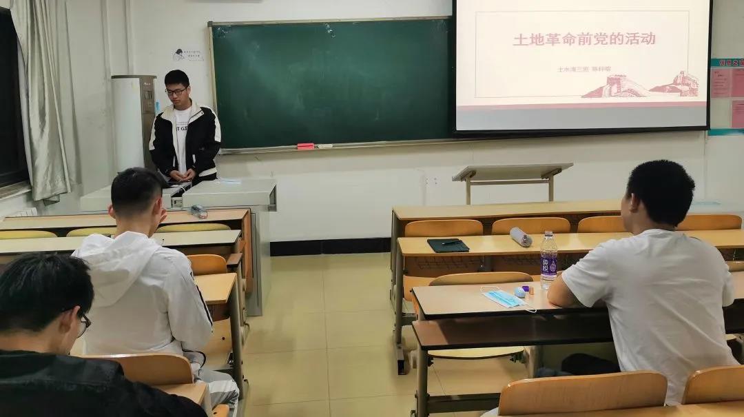 随后,入党积极分子张恒、陈梓榕为全体团员介绍了中国共产党成立前的历史背景和党在土地革命战争之前开展的活动。张恒表示,我们要认识到中国共产党成立的必然性,无产阶级的产生和发展,为中国共产党的建立奠定了阶级基础;马克思列宁主义在中国的广泛传播,为中国共产党的建立奠定了思想基础;五四运动为中国共产党的建立作了思想上和干部上的准备。陈梓榕整理了建党初期的历史时间线,明确了中国共产党在北伐战争中的贡献。