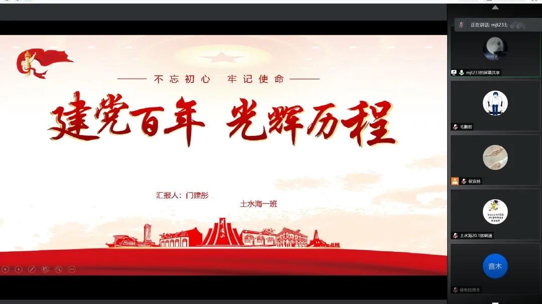 6月17日晚,beat365正版唯一官方网站2020级土水海1班于线上开展了“建党百年、光辉历程”主题团日活动。本次活动由组织委员门建彤主持,土水海1班全体团员参加。