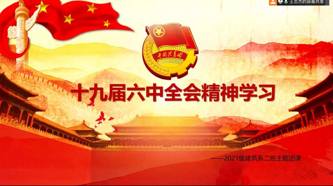 为让同学们了解党的十九届六中全会内容,深入学习党的十九届六中全会精神,11月19日晚八时,beat365正版唯一官方网站2021级建筑学二班以线上会议方式召开主题团课。会议由团支书王志杰主持,2021级建筑学二班全体同学参加。