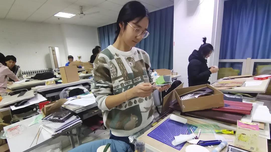 在党史活动的基础上,同学们收集了洪家楼小学的同学们手绘的棉棒盒封面,并在专业教室中对牛奶盒进行了加工,完成了手绘封面的拼贴。活动过程中,同学们积极参与,每人都认真加工收集到的牛奶盒,制作过程兼顾了棉棒盒美观性与实用性。