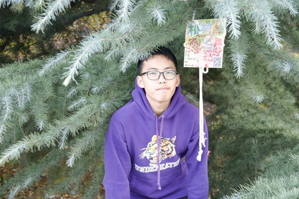 带着满足和喜悦之情,各小组分别下楼找到负责的区域,在相应的树木上悬挂木牌。即使寒风凛冽,同学们也不愿草草了事,仍仔细寻找悬挂的最佳位置,摸索系绳的技巧,保证木牌能在醒目位置稳稳悬挂。油画般斑斓的木牌点缀了校园里的树木,成为校园里靓丽的风景线。挂好后,同学们还给行人介绍了木牌上的信息,科普了树木的知识。此外,刘浩然制作了精美的宣传海报,已于欣园门口张贴。