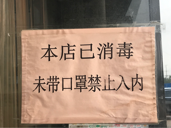 最后,赵彤辉对社区内的超市进了防疫宣传。超市门口贴着“本店已消毒,不戴口罩禁止入内”的标语,充分体现出超市对防疫的重视。超市的工作人员接受了防疫知识的宣传,也表示十分重视防疫工作。
