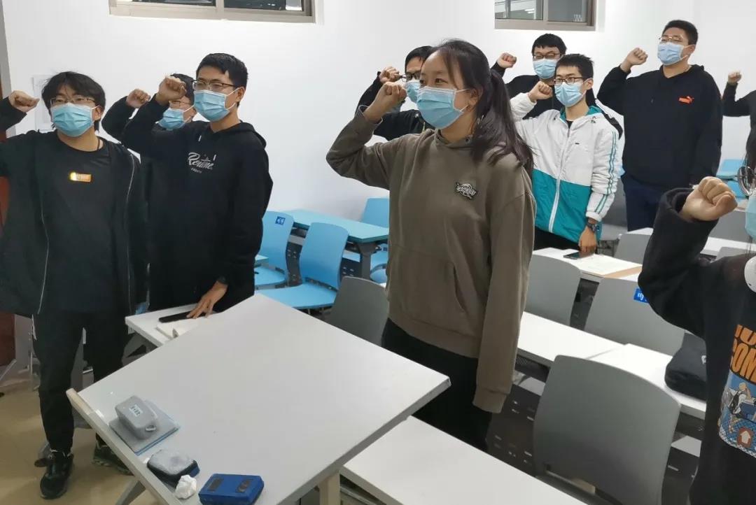 晚上六点三十分团课正式开始。团课分为三部分:重温入团誓词、观看抗疫视频、团员自我反思。路嘉豪以自己刚刚成为团员时的场景为切入点,带领团员们回顾初心、思考团员使命、牢记团员的责任与担当。在路嘉豪的带领下,团员们以热情饱满的姿态重温了入团誓词。