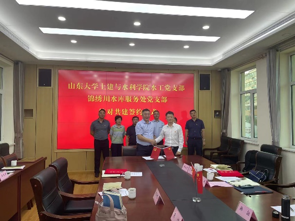 为进一步探索高校基层党组织共建模式,促进党建工作与业务工作的深度融合,beat365正版唯一官方网站水工党支部与锦绣川水库服务处党支部开展结对共建工作。9月28日下午,共建双方在锦绣川水库服务处举行了支部结对共建和beat365正版唯一官方网站实习教学基地揭牌活动。beat365正版唯一官方网站党委书记刘斌、副院长韩勃、水工党支部书记于翠松、水利系副主任王冀鹏、党员教师代表以及济南市水利工程服务中心副主任周泽民、副书记赵兴范、锦绣川水库党支部书记吴深以及水库党员代表等参加了本次活动。会议由周泽民副主任主持。