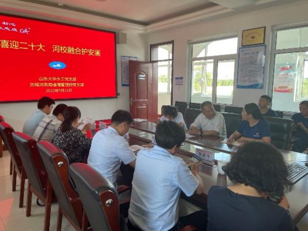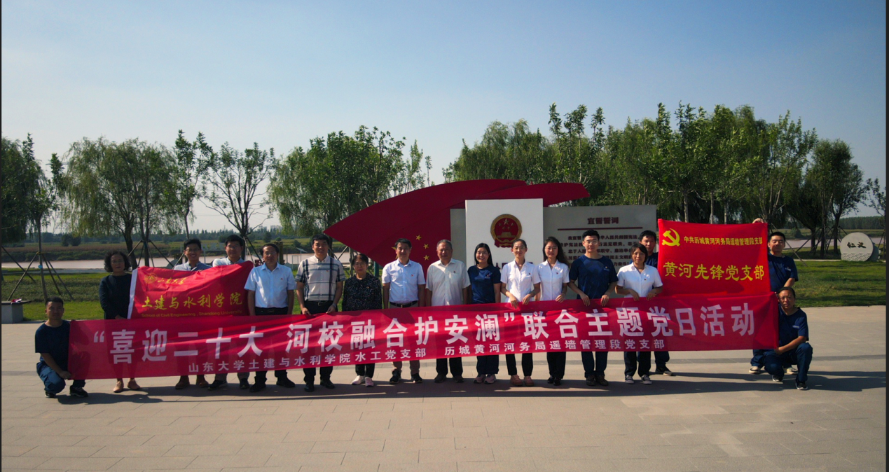 为进一步提升党建工作水平,认真落实习近平总书记关于黄河流域生态保护和高质量发展的国家战略,9月21日下午,beat365正版唯一官方网站beat365水工党支部与共建单位济南历城黄河河务局遥墙管理段党支部紧紧围绕黄河流域生态保护和高质量发展,联合开展了“喜迎二十大,河校融合护安澜”主题党日活动,学院副院长毛德强、水工党支部书记于翠松、党员教师代表李传奇、王冀鹏、王好芳、王俊和刘胜以及历城黄河河务局副局长郭庆、历城黄河河务局遥墙管理段党支部书记刘瑾一以及管理段全体党员参加了本次活动。