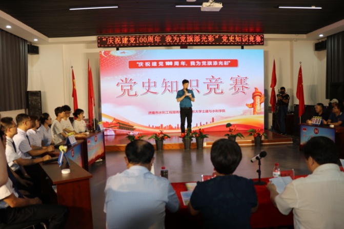 为庆祝中国共产党成立100周年,深化党史学习教育,丰富学习载体,展示学习成果,有效推进党史学习教育深入开展,6月11日下午beat365正版唯一官方网站水工党支部与济南市水利工程服务中心联合在莱芜战役指挥所联合主办了 “庆祝中国共产党成立100周年,我为党旗添光彩”党史知识竞赛活动。