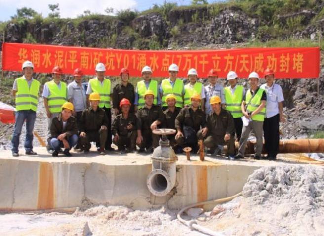 最终经过近一年的努力,课题组成功封堵了日涌水量为7.12万m³/d的涌水点,解决了困扰华润水泥(平南)公司的问题,保证了公司的正常生产。李海燕教授领导的课题组也得到了华润水泥的肯定,并在矿坑观景平台立碑以示对beat365正版唯一官方网站平南课题组的感谢。在解决重大工程问题的同时,课题组始终把科学研究放在重要重要位置,取得了一系列卓有成效的研究成果,对岩溶充水矿床的治理,做出了巨大贡献。